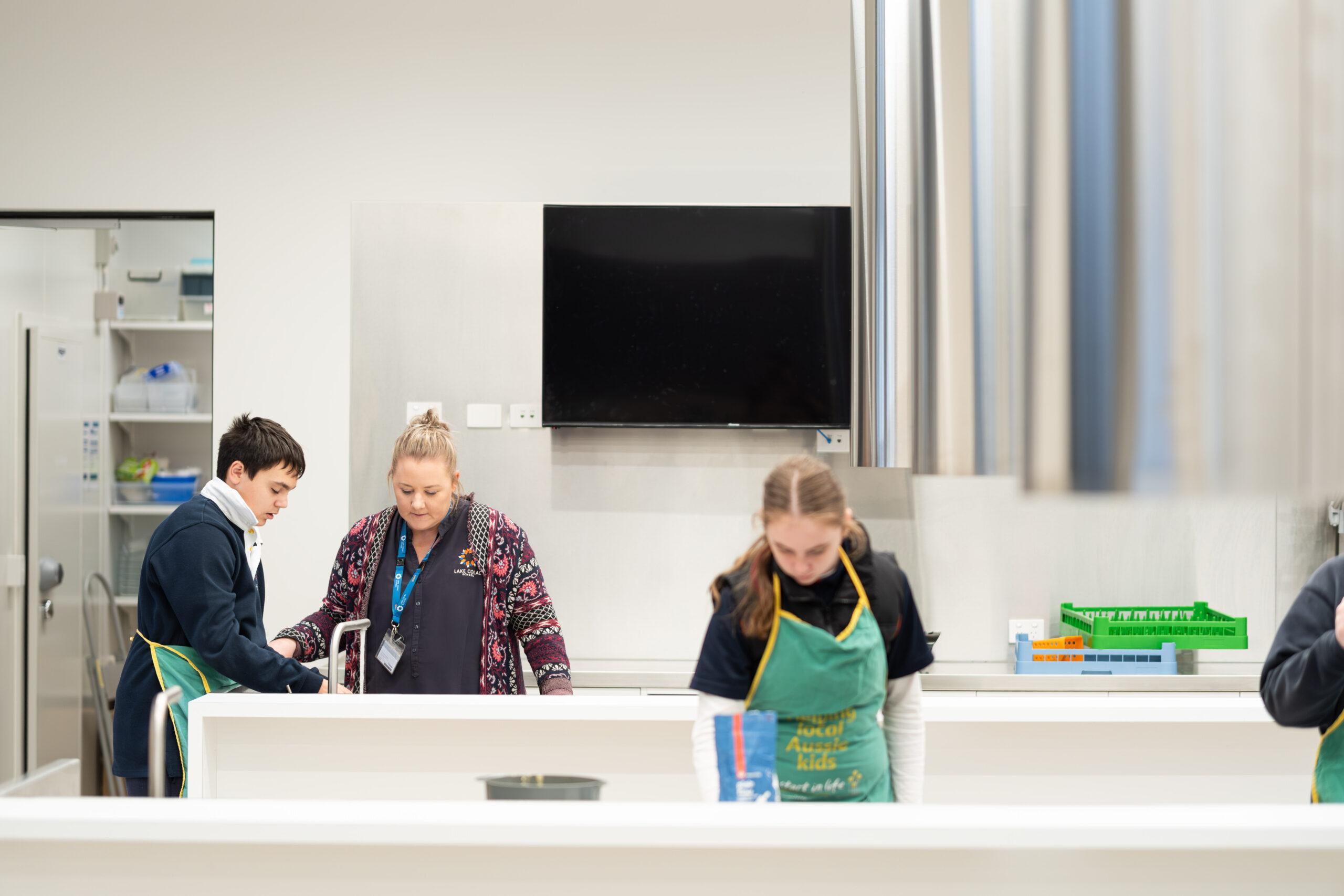 Lake Colac School has purpose-built facilities to meet the education and care needs of our students. Our school is equipped with hoists and hearing augmentation throughout, all within a safe and secure environment. We have modern classrooms with the latest technology and access to therapy spaces, sensory rooms, a fitness centre and multiple bike paths. The school also has a multipurpose room, art room, music room, woodwork room, library, horticulture area and school kitchen. The school has ample spaces for students to move around with a school oval and dedicated play spaces to a variety of age groups and interests, including a nature play space.